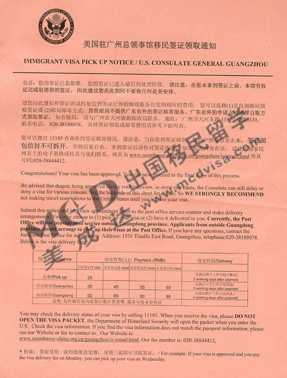 在向美国签证中心提交了DS-230 Part I和资料补充表后的三个月后,杨先生收到了美领发出的第四号包裹,即约见信包裹。2008年10月15日,经过美成达顾问的精心培训,带着完整的面谈资料,杨先生一家三口信心饱满地走向了美国驻广州总领事馆,面谈顺利通过。